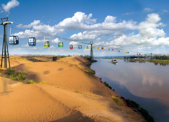 響沙灣。位于庫布齊沙漠的邊緣因為傳言“這里的沙子會唱歌”,所以被稱作響沙灣。到達沙漠之前需要乘坐索道車。在悅沙島可以享受騎駱駝的感受,但是要去悅沙島,必須坐沙漠沖浪車。游客還可以在黃閣大橋上眺望陰山山脈和河套平原。響沙灣里面讓人印象最深刻的就是滿目的黃沙,在落日下有特別的一種美。門票大概為120元