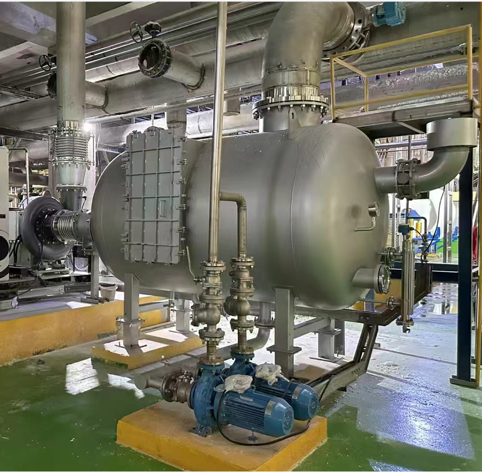 該設(shè)備主要應(yīng)用真空泵前、磁懸浮鼓風(fēng)機(jī)前端,去除氣體中夾帶的水分和液滴。設(shè)備綜合擋板式原理、絲網(wǎng)除沫器原理、折流板分離器原理、或?yàn)V芯濾筒過濾器機(jī)理,綜合的一款高效率針對負(fù)壓真空狀態(tài)下分離器難以分離而設(shè)計(jì)。